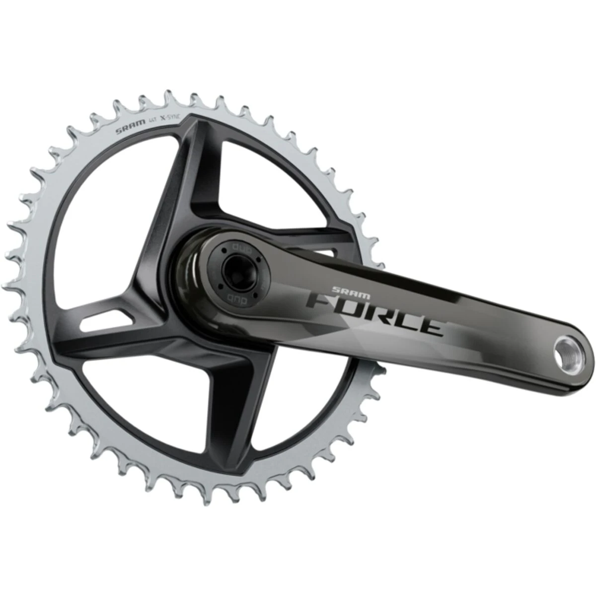 The new Force 1 DUB 12-Speed Direct Mount Crankset builds on SRAM’s 1x technology, giving this crank a lighter and stronger feel. Implementing the X-SYNC chainrings to the 1x drivetrain will give you better performance in muddier conditions thanks to the mud-clearing recesses for the inner chain links and rollers. The chainring comes in a 40t but also fits direct mount chainrings from 38t through 46t and is compatible with all SRAM Road Wide DUB bottom brackets. Combining this crank with the DUB bottom bracket, sold separately. With this new technology, SRAM creates a simpler relationship between chainring, crank, spindle, and bottom bracket, giving you smoother on-bike performance.